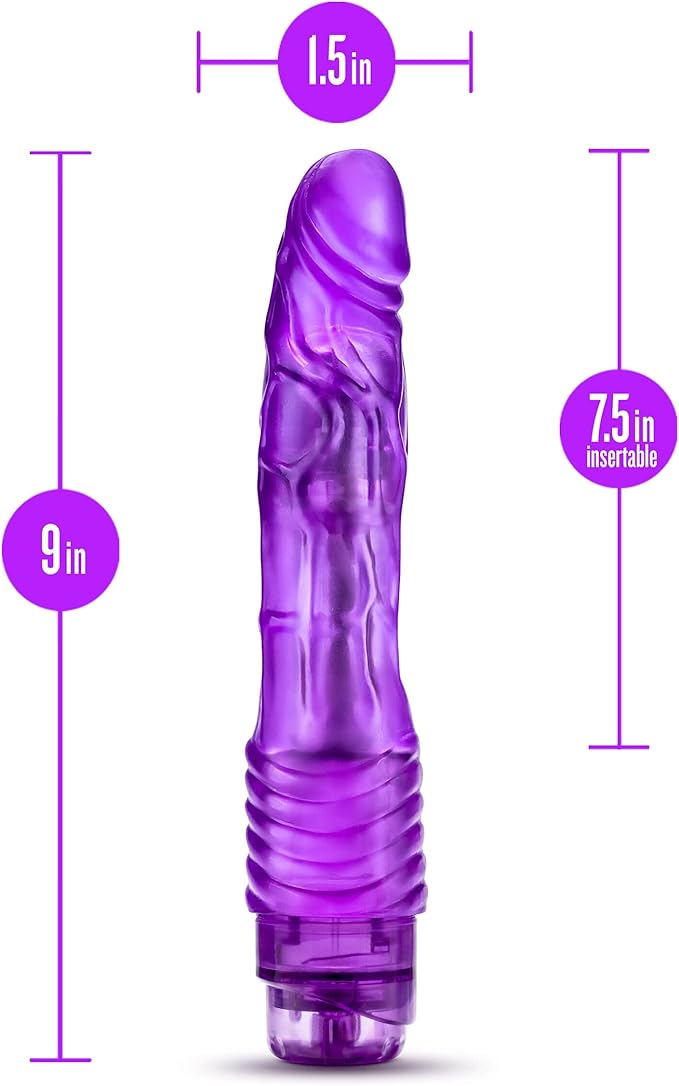 Blush Novelties B Yours Vibe #2 es un consolador vibratorio realista de 9 pulgadas con venas y base de dial giratorio para vibraciones de múltiples velocidades. Tiene una cabeza cónica y un eje delgado para que se pueda insertar de forma cómoda y fácil. Con nuestra tecnología FlexiShaft® para un eje más rígido pero flexible que se ajusta a su cuerpo para obtener la máxima comodidad y placer. Creado para el principiante y para los conscientes de los costos, sumergible IPX7 a prueba de agua.