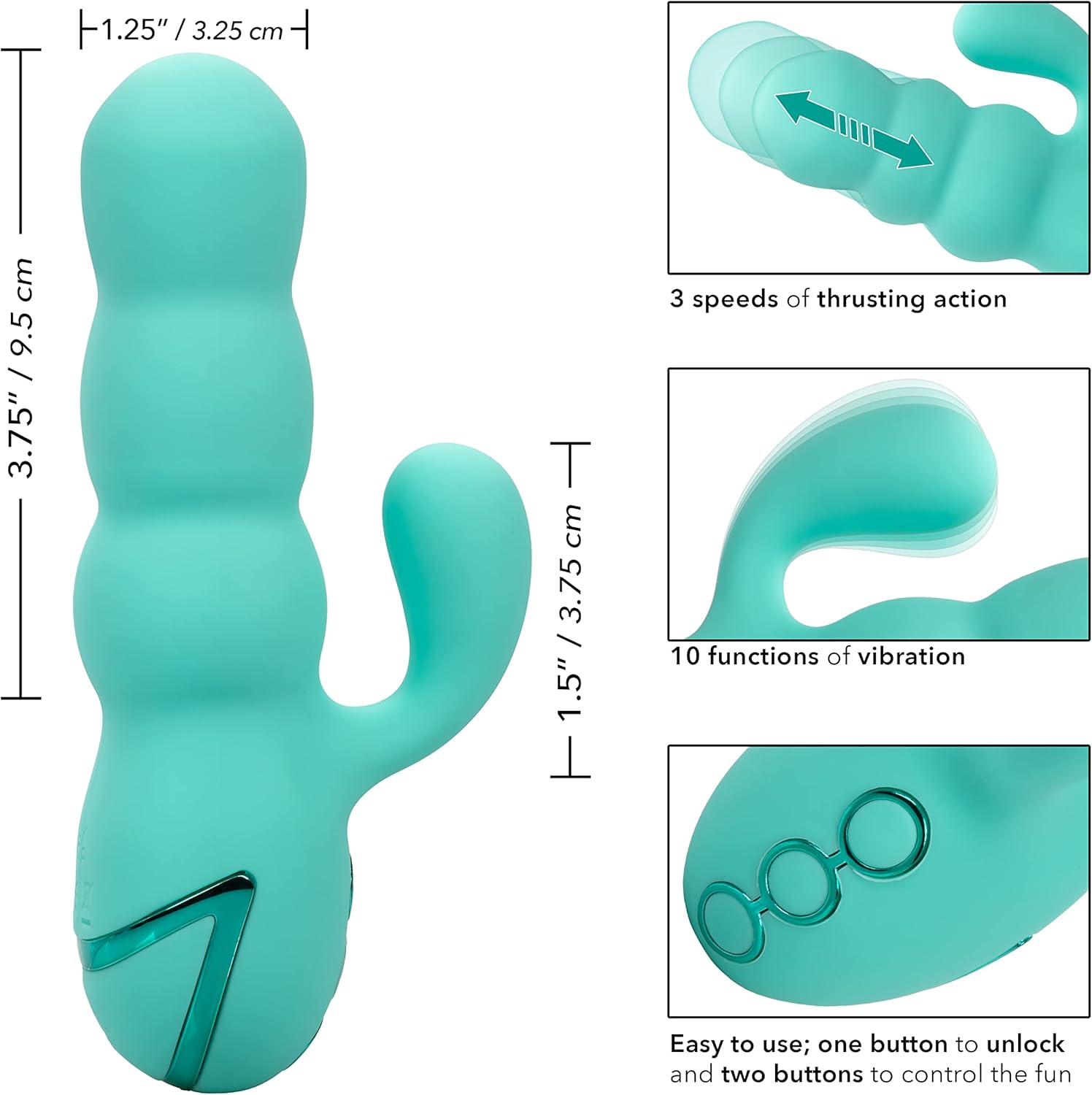 El teaser flexible se puede utilizar independientemente de la función de empuje para un placer totalmente personalizable. ¡Los giros que hacen temblar las rodillas en este ambiente lúdico no son para los débiles de corazón! Los motores de doble potencia emiten profundas vibraciones retumbantes y un poderoso empuje.